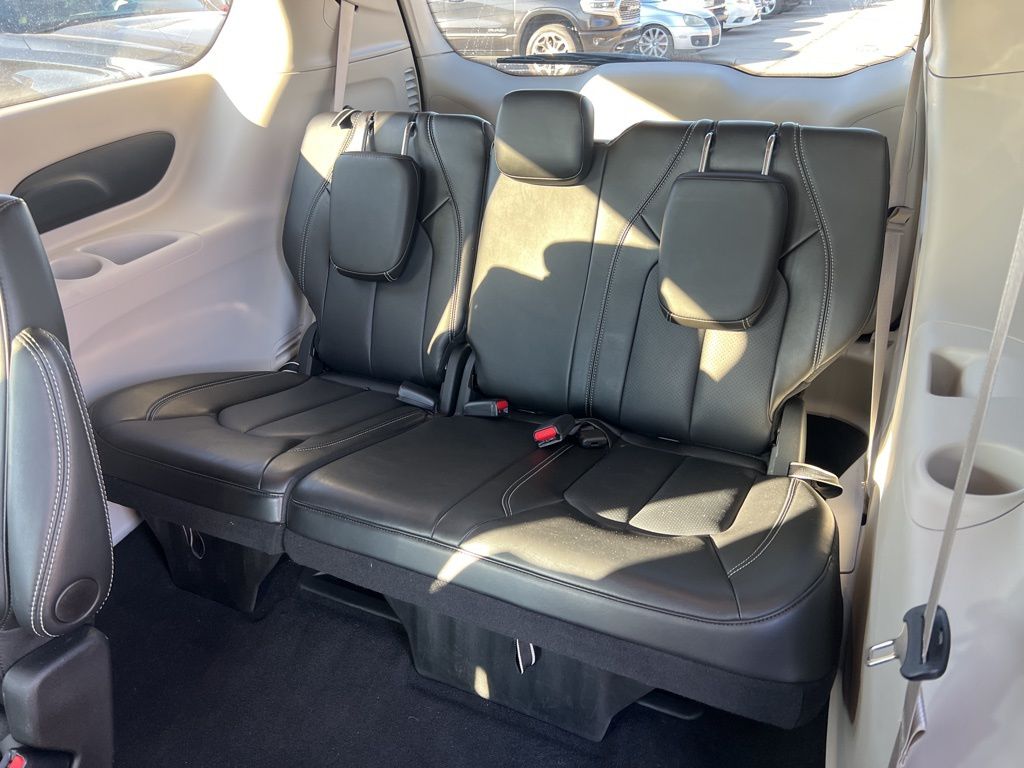 The Pacifica's 3.6L V6 engine and 9-speed automatic transmission deliver a smooth and efficient performance, with an impressive 19 city/28 highway MPG rating. Enjoy the convenience of the Power Liftgate, Heated Steering Wheel, and Dual-Zone Automatic Climate Control, all while staying connected with the intuitive Uconnect 5 infotainment system.