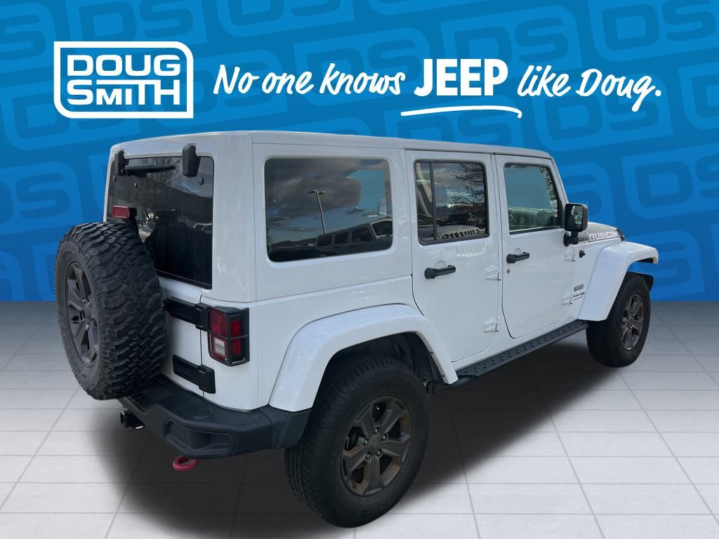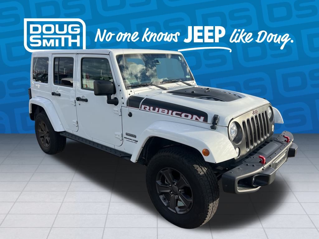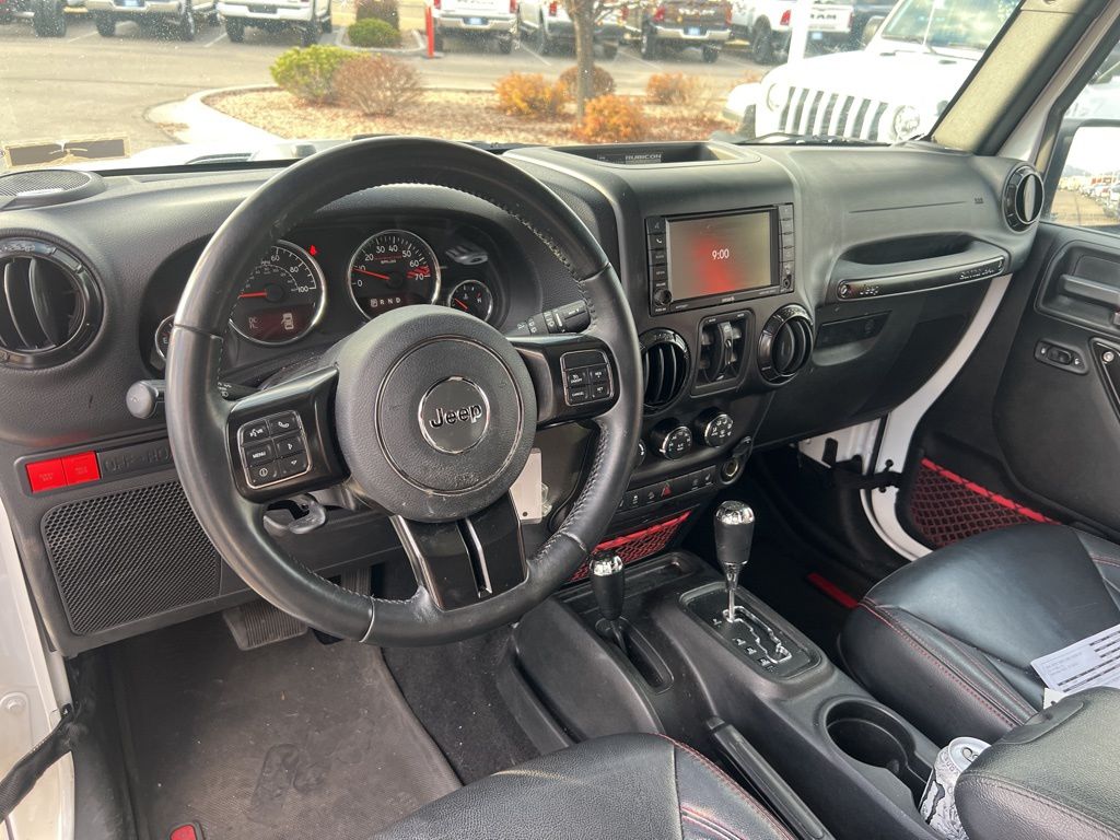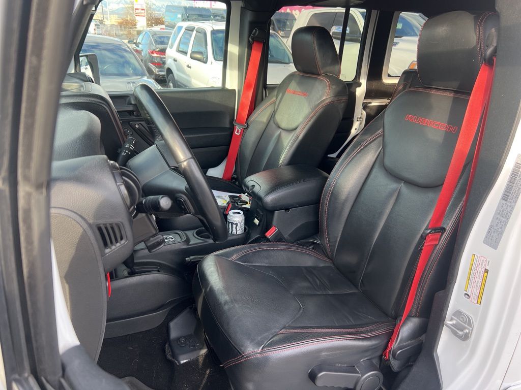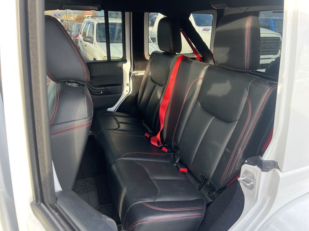 **BLUETOOTH, HANDS-FREE**, **USB**, **HEATED LEATHER**, **AUTOCHECK ONE OWNER**, **LOCAL TRADE**, CLEAN TITLE, LOCAL TRADE, Accent Stitching, Air Conditioning w/Auto Temperature Control, Air Filtering, Black Fuel Filler Door, Class II Receiver Hitch, Connectivity Group, Dana 44/226MM Rear Axle, Dana M44/216MM Front Axle, GPS Navigation, HD Rock Rails w/Step Pad, Heated Front Seats, Hood w/Power Dome, Humidity Sensor, Jeep Trail Rated Kit, Logloss Granite Crystal Jeep Badge, Low Gloss Wrangler JK Decal, Max Tow Package, Midnight Star Interior Accents, MOPAR Black Tail Lamp Guards, MOPAR Grab Handles, MOPAR Slush Mats w/Red Accents, Premium Black Sunrider Soft Top, Premium EVIC Message Center, Quick Order Package 24Z Rubicon Recon, R1234YF A/C Refrigerant, Recon Badge, Recon Decals, Recon Grille, Recon Leather Seats, Recon Package, Red Front & Rear Tow Hooks, Red Seat Belts, Red Switches, Red Trail Rated Badge, Remote Start System, Steel Front Bumper, Steel Rear Bumper, Sunrider Soft Top, Tire Pressure Monitoring Display, Trailer Tow w/4-Pin Connector Wiring, Uconnect Voice Command w/Bluetooth, Vehicle Information Center, Wheels: 17" x 7.5" Granite Crystal Aluminum.