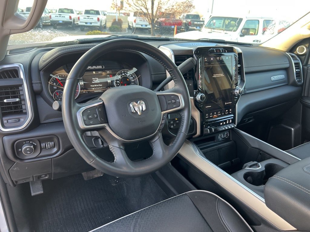 The Laramie Level B Equipment Group elevates this truck to new heights, offering advanced technology like a 12-inch touchscreen display, a 17-speaker harman/kardon premium sound system, and a surround-view camera system. The Towing Technology Group further enhances the driving experience with features like a center stop lamp with cargo view camera and trailer reverse guidance.